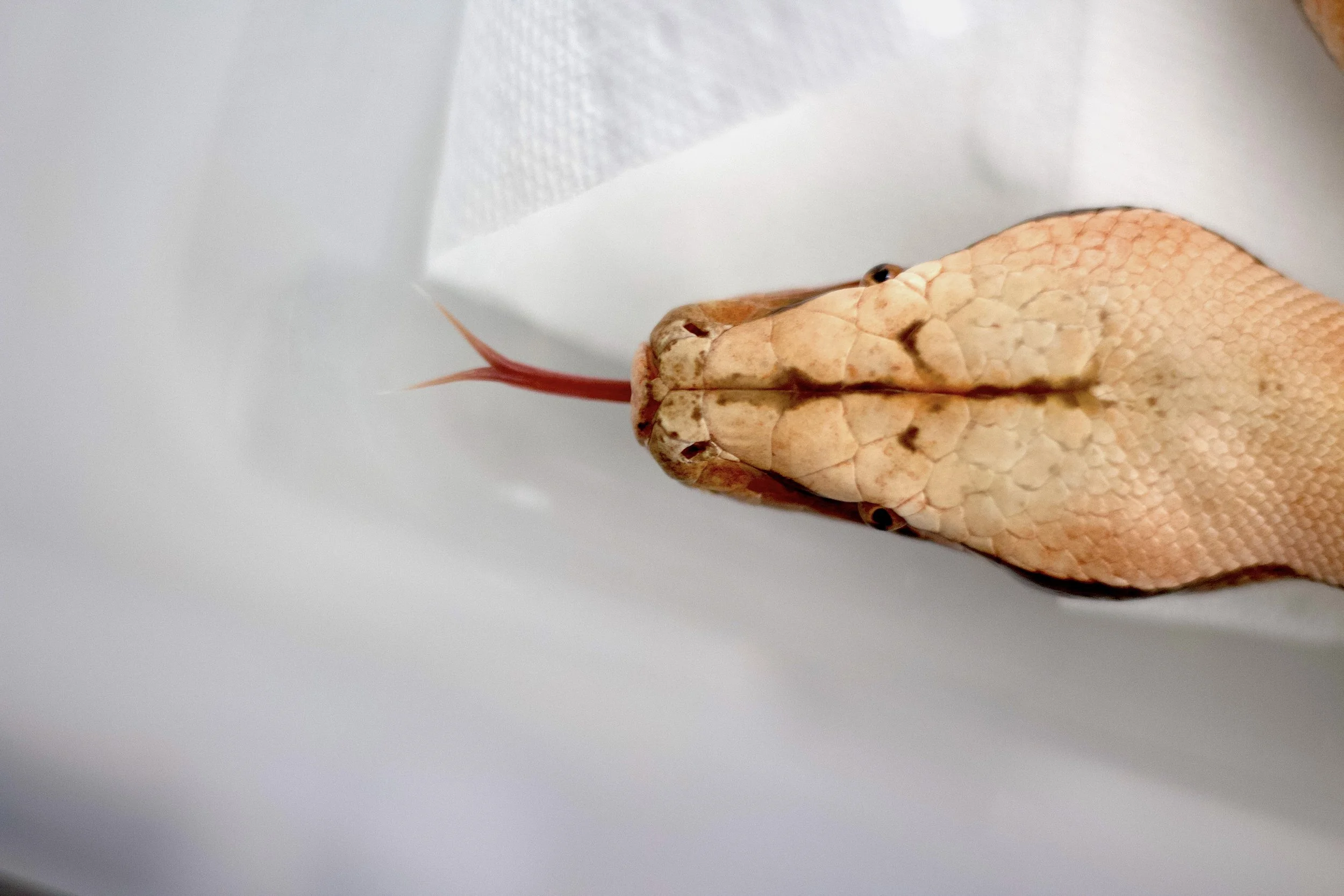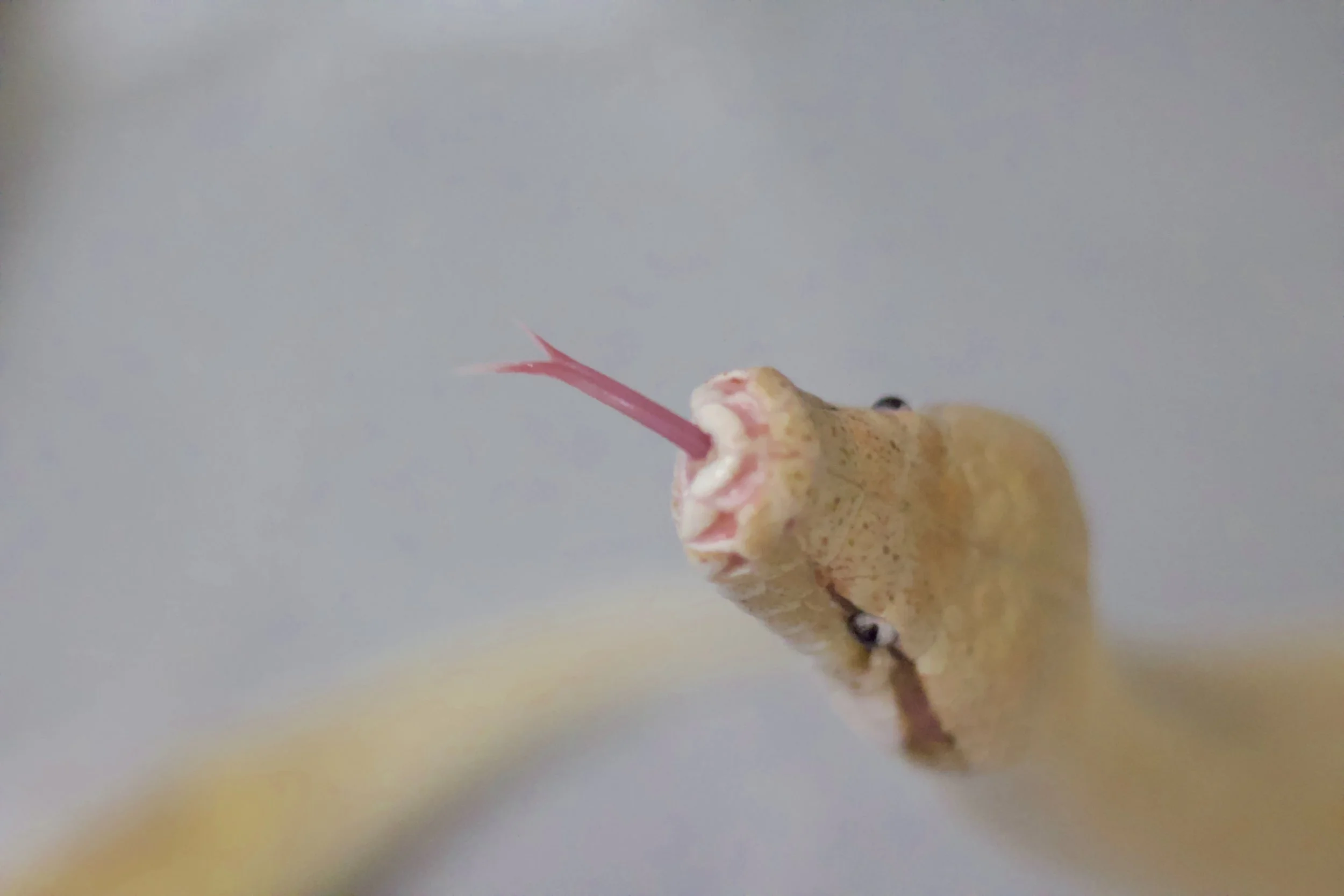 A distinctive pink or very light-colored tongue. In some cases, the presence of other morphs may alter this appearance, adding some dark pigment to the tongue. Also, different genetic mutations like both lines of Albino (T+ and T-.) as well as the Pied blood python present PINK tongues. So, the pink tongue is not exclusive of the Matrix gene.